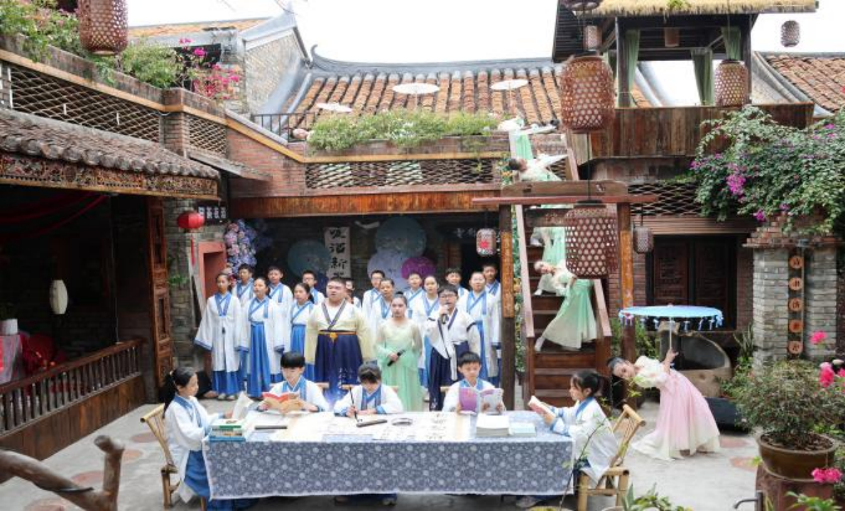 学生们身着汉服演绎《唐诗里的中国》,在衣袂翩跹间再现盛唐征象;舞台剧《城南往事》经典片断柔和演出,用扮演诠释笔墨背后的岁月千里淀、东莞松山湖改日学校改编讲义剧《西纪行之三打白骨精》,用芳华视角解锁名著新篇......主会场行为亮点纷呈,师生同台领读共享,以声传情、以文会友,全意见展现阅读的多元魔力。