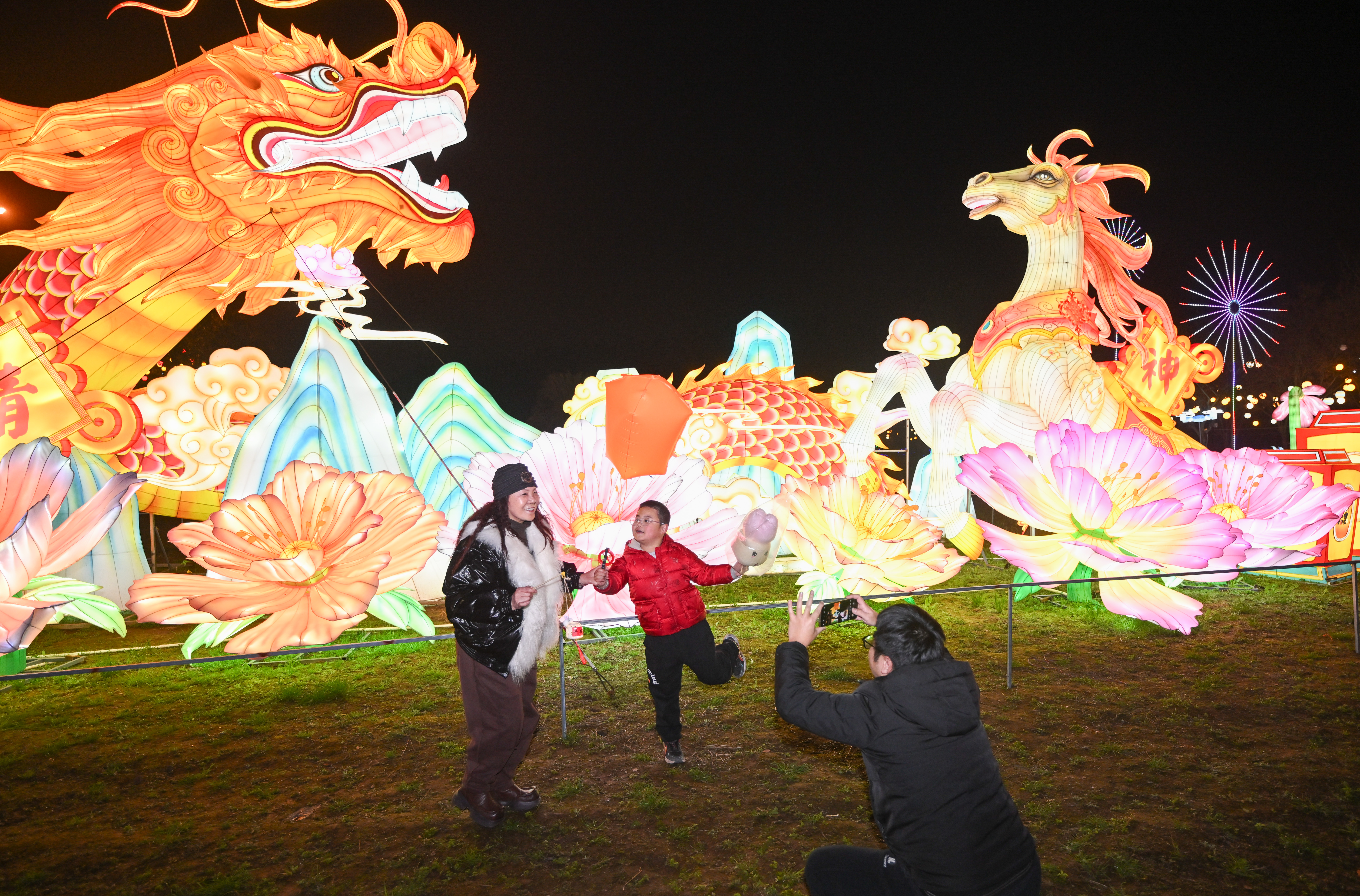▲铜梁第十二届龙灯艺术节现场,市民与《精神兴奋》组灯合影。记者 谢智强 摄/视觉重庆