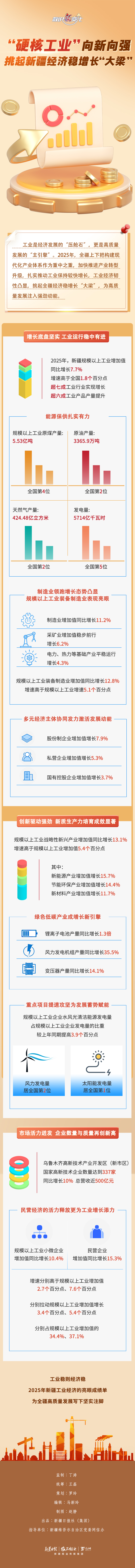 2025年,新疆把构建当代化产业体系行动重心任务,亚搏(中国)app捏续鼓舞产业转型升级,滚球app中国官方网站工业经济驱逐较快增长,韧性显赫增强,挑起新疆经济稳增长“大梁”,为高质料发展注入壮健能源。本期《数说“新”变化》为您解读2025年新疆工业经济发展的亮点与特征。