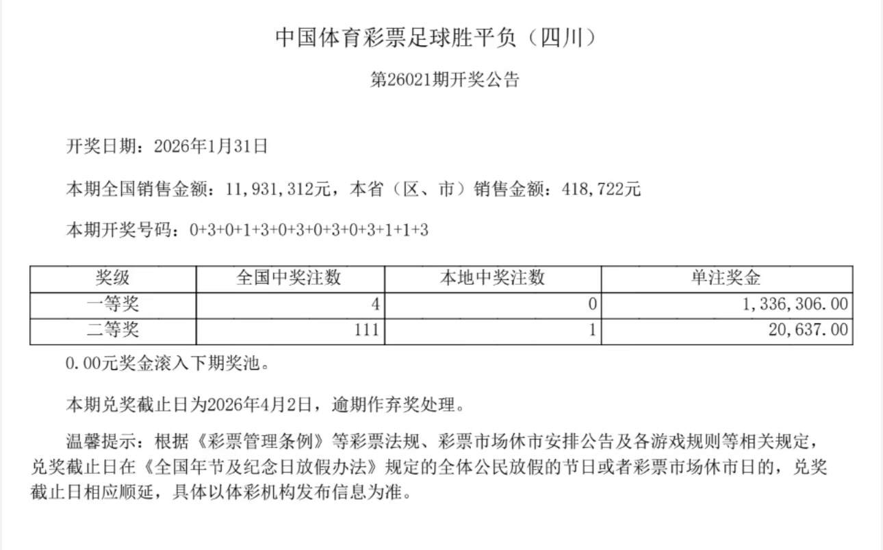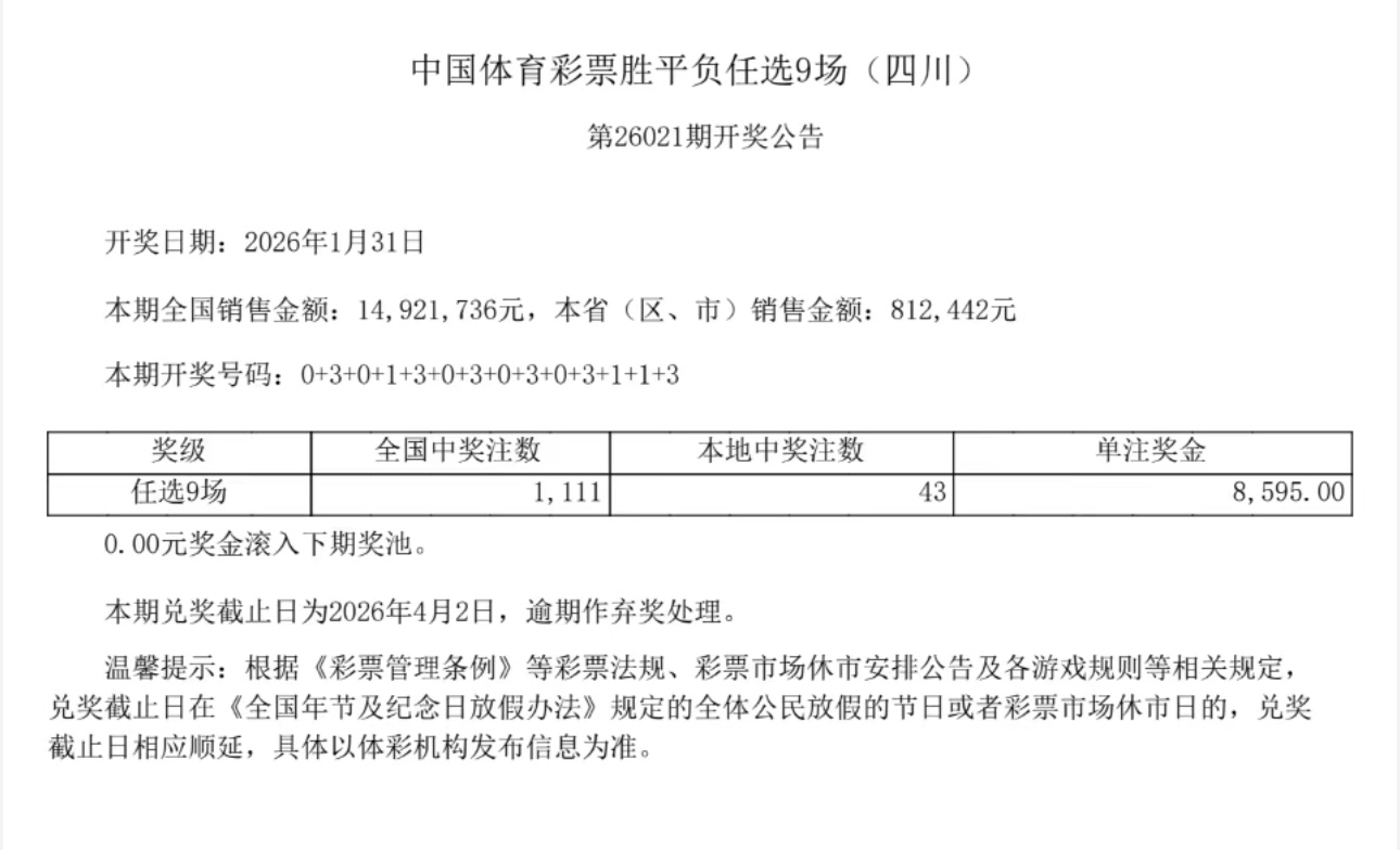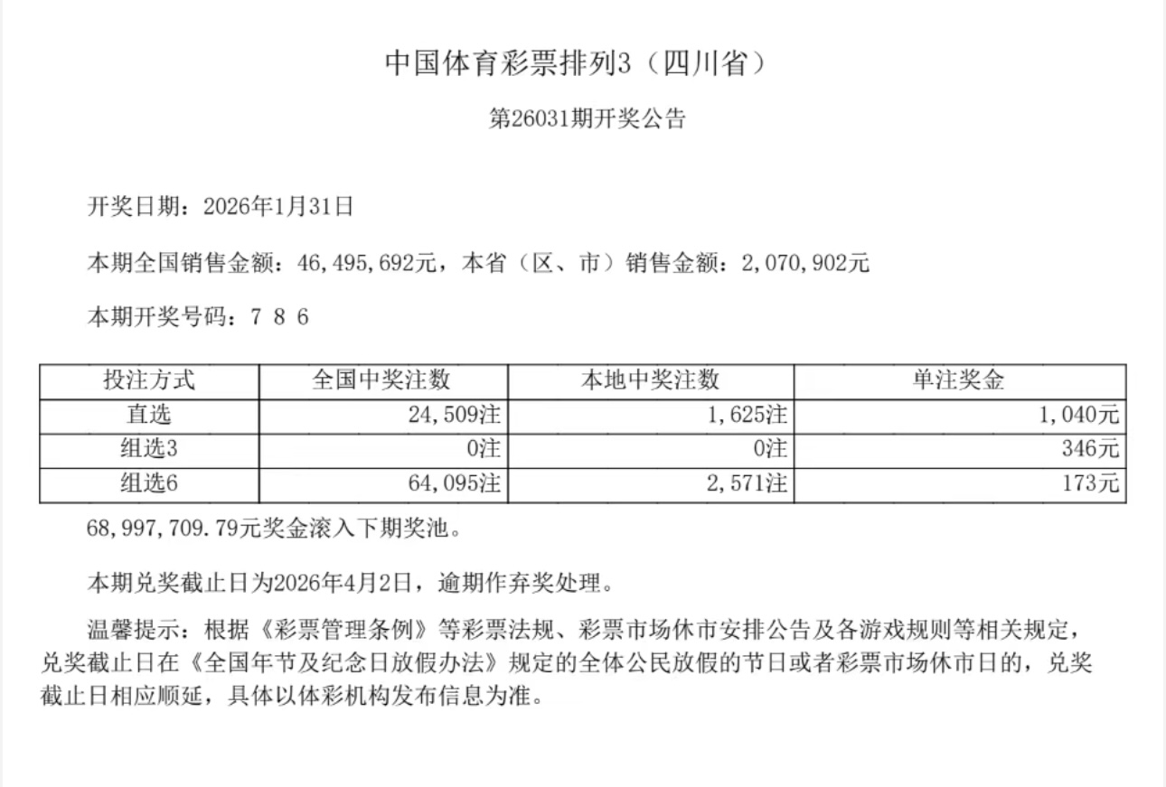 滚球app中国官方网站 中国体育彩票1月31日开奖效用