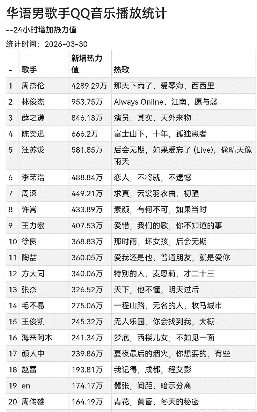 近期乐坛络续升温,但这次咱们暂且遗弃那些喧嚣的八卦与争议,转而聚焦一个更直不雅、更具数据坚持的视角——全网音乐热力值及时榜单。